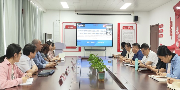 为深化中外合作办学内涵建设,526日下午,信息工程公司在郑州校区办公楼A514隆重举行“计算机应用技术(中外合作办学)专业外籍专家教学周专题研讨会”。会议聚焦公司产品创新与国际合作实践,特邀中加国际合作项目管理专员Bruce Yu、加方外教团队Mrs.Ada AjunwaMr.Hazem Youssef等外方代表出席。信息工程公司党政领导班子成员、专业教师团队共同参与研讨,会议由副经理夏丽珍主持。