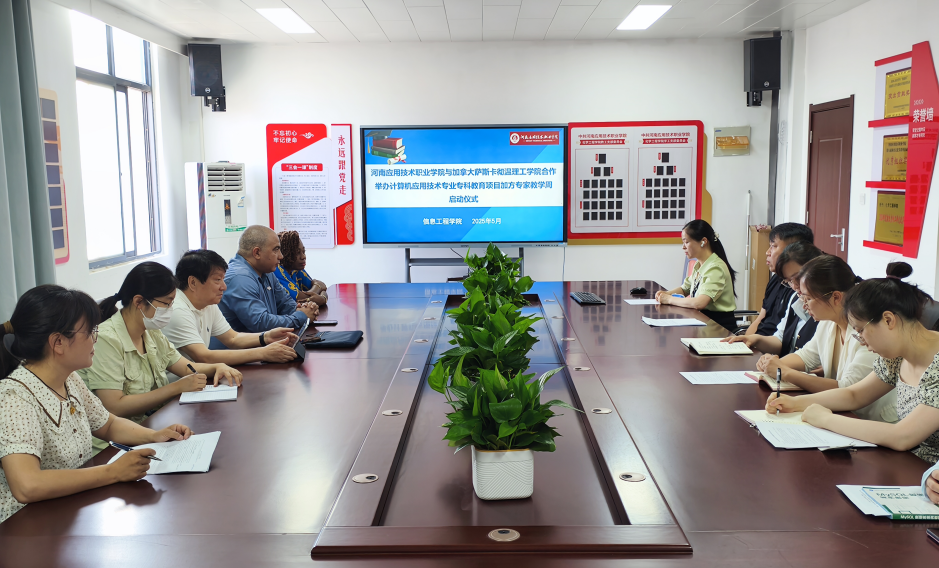 5月19日,bv伟德国际1946在行政楼512会议室举行了与加拿大萨斯卡彻温理工公司合作计算机应用技术专业专科教育项目加方专家教学周启动仪式。本次会议由副经理夏丽珍主持,参与仪式的有中加国际合作项目主任、项目管理委员会管理专员Bruce Yu,来自加拿大的外教团队Mrs.Ada Ajunwa和Mr.Hazem Youssef老师、科研外事处游渊副处长、信息工程公司党总支书记崔琳、公司经理王雷,语言助教老师李改玲,公司教师代表曲宏阳与员工代表。