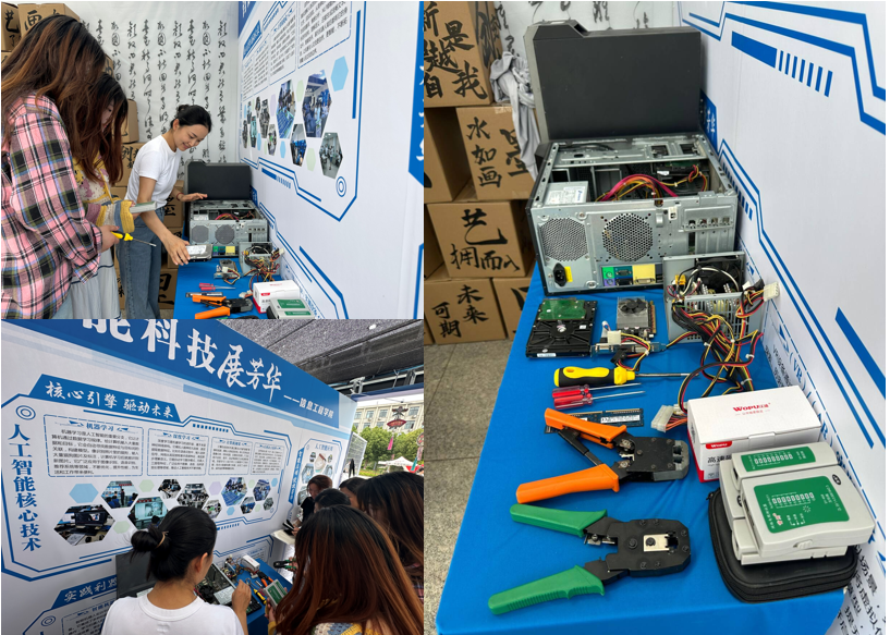 活动前期,实训室管理教师带领员工们分工协作,有条不紊地进行布展工作。从规划展区布局,到陈列各类计算机硬件设备;从调试展示用的电脑,到准备科普资料,每一个环节都凝聚着师生们的心血。他们用专业与热情,为活动的顺利开展奠定了坚实基础。