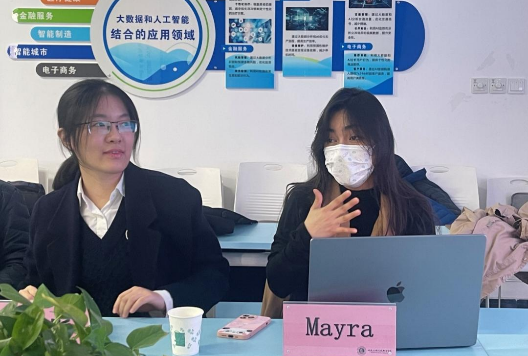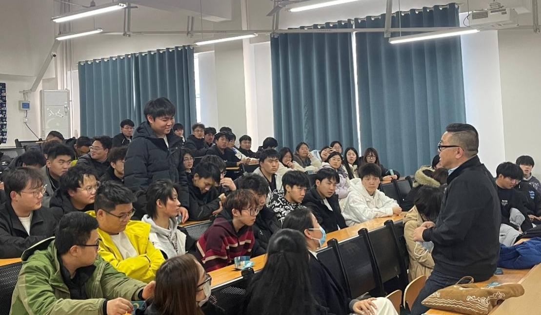 教师研讨结束后,师生交流活动于D303教室随即开展。加方代表于主任通过视频生动展示了加拿大的风土人情,系统介绍了中外合作办学项目的核心优势、加拿大高校留学政策及国际人才职业发展路径,外籍教师代表则针对本学期授课情况、员工课堂表现进行了简要总结,深入分享了加方课程的教学特色及丰富的海外学习资源,互动环节中同学们热情高涨。