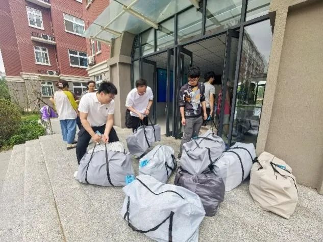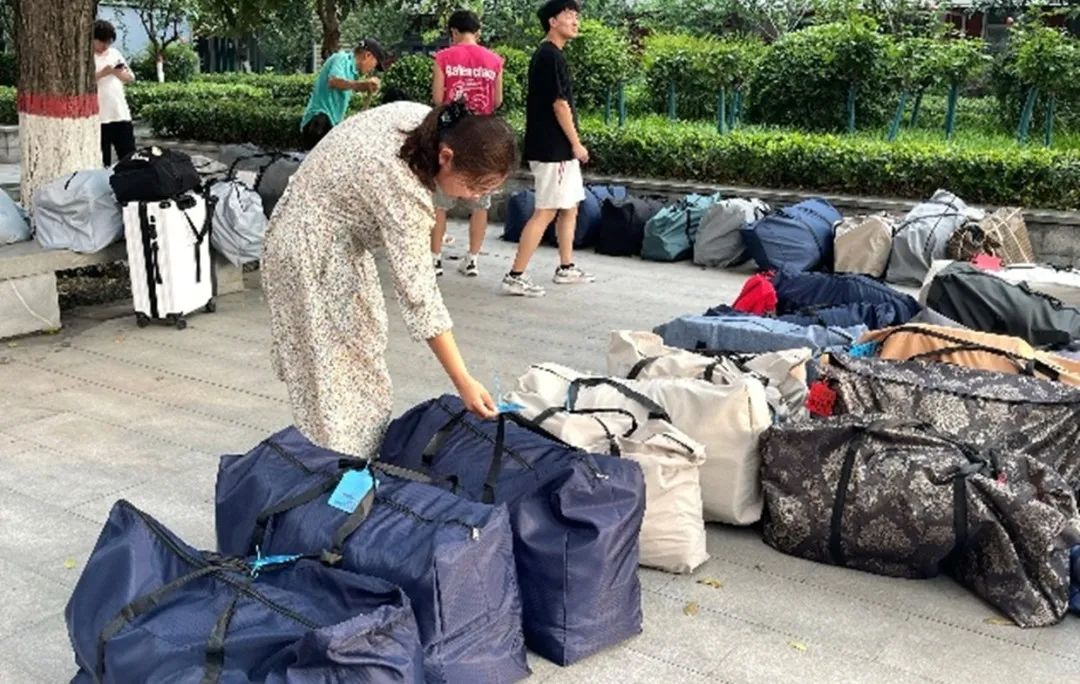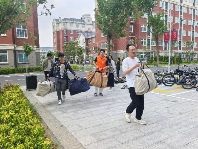搬迁当天,晨光熹微,信息工程公司党总支书记崔琳带领辅导员团队提前抵达宿舍楼下,对搬迁工作进行全面统筹。他们仔细核对搬迁车辆信息,规划最优运输路线,针对可能出现的突发情况制定应急预案,确保搬迁工作万无一失。志愿者们早已准备就绪。他们穿梭在各个宿舍之间,主动帮助同学打包物品,对易碎物品细心包裹防护;在行李装车环节,仔细核验行李标牌,与司机师傅紧密配合,合理规划车厢空间,高效完成装载任务,让搬迁工作有序推进。