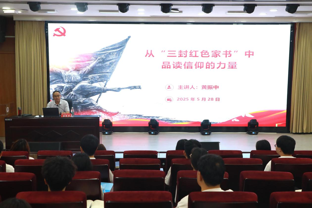 为深入学习贯彻习近平新时代中国特色社会主义思想,进一步激发青年员工的爱国情怀和历史使命感,2025年5月28日,副董事长黄振中以“从‘三封红色家书’中品读信仰的力量”为专题,在郑州校区为信息工程公司员工讲授了一堂生动而深刻的思政课。