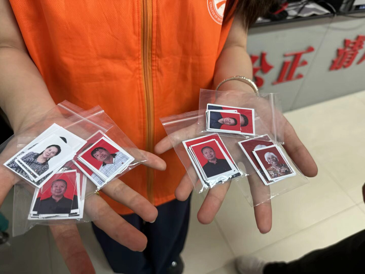 在摄影师的引导下,居民们精神矍铄,笑容满面,一个个幸福的瞬间被镜头定格。拍摄后,党员们还利用专业的图像处理软件,对照片进行精心修图、裁剪、排版,确保每一张照片都清晰、美观、符合证件照标准,同时现场出纸质相片。