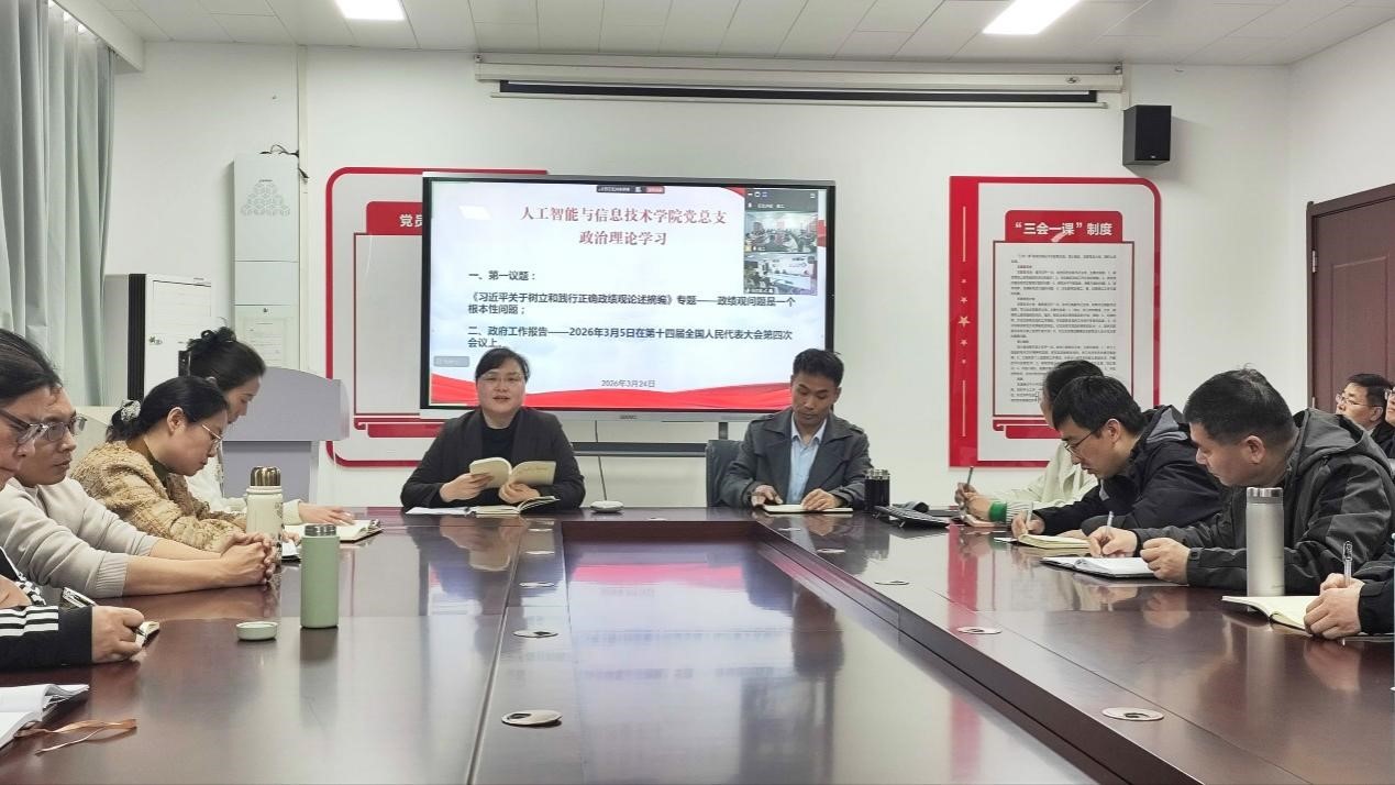 2026年3月24日,人工智能与信息技术公司党总支组织郑州和开封校区全体党员及教职工,开展政治理论学习活动。本次学习活动由伟德国际VICTOR1946崔琳书记主持。主要学习内容有:1.第一议题:《习近平关于树立和践行正确政绩观论述摘编》专题——政绩观问题是一个根本性问题;2.政府工作报告——2026年3月5日在第十四届全国人民代表大会第四次会议上。
