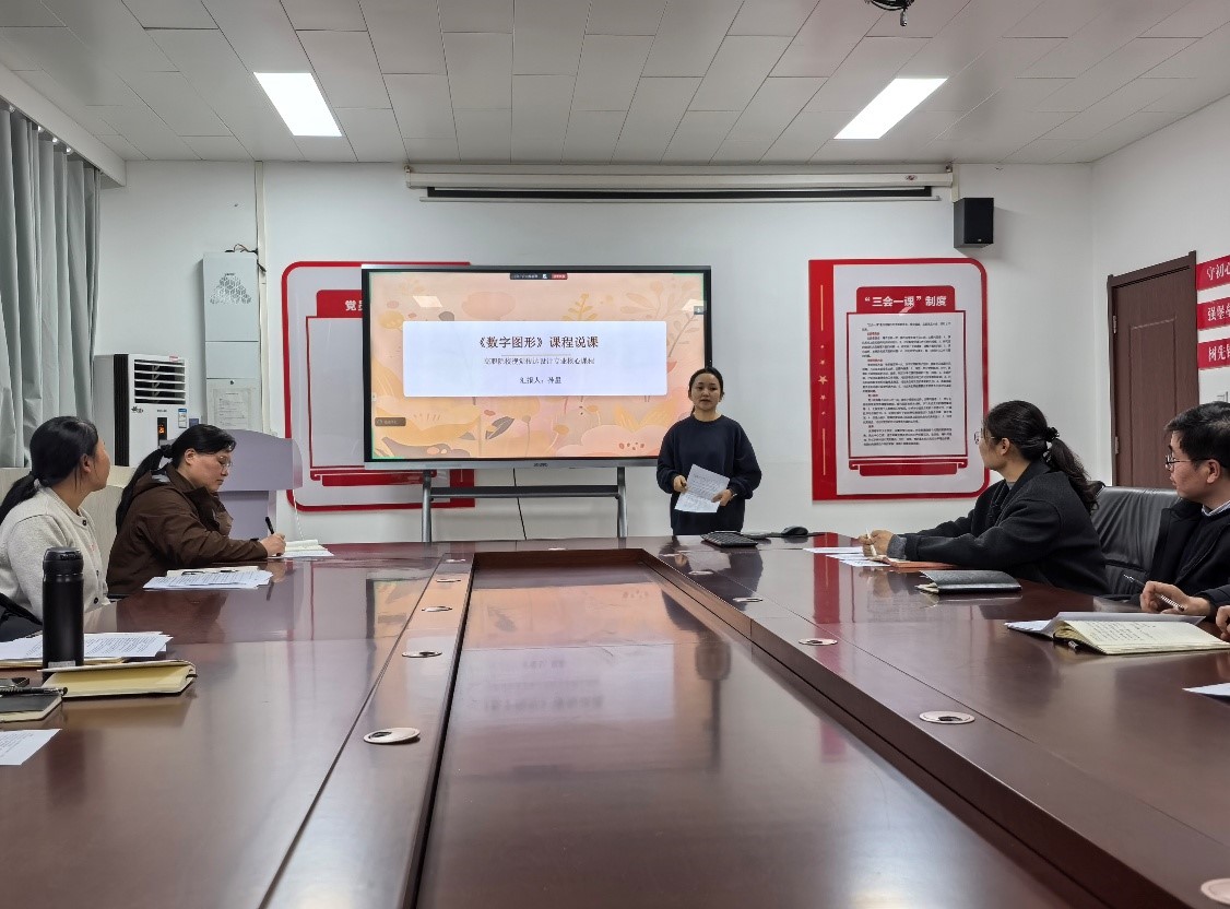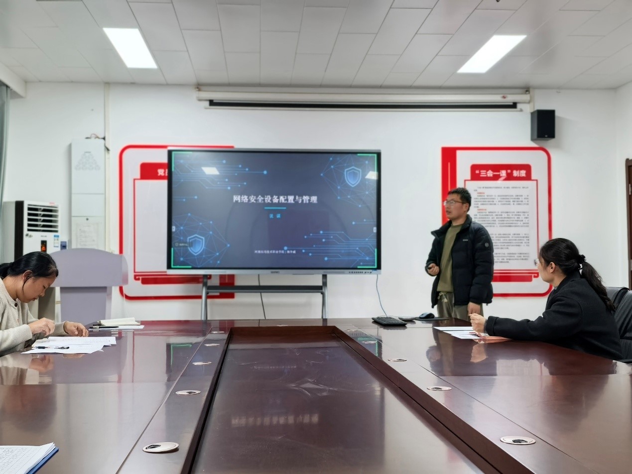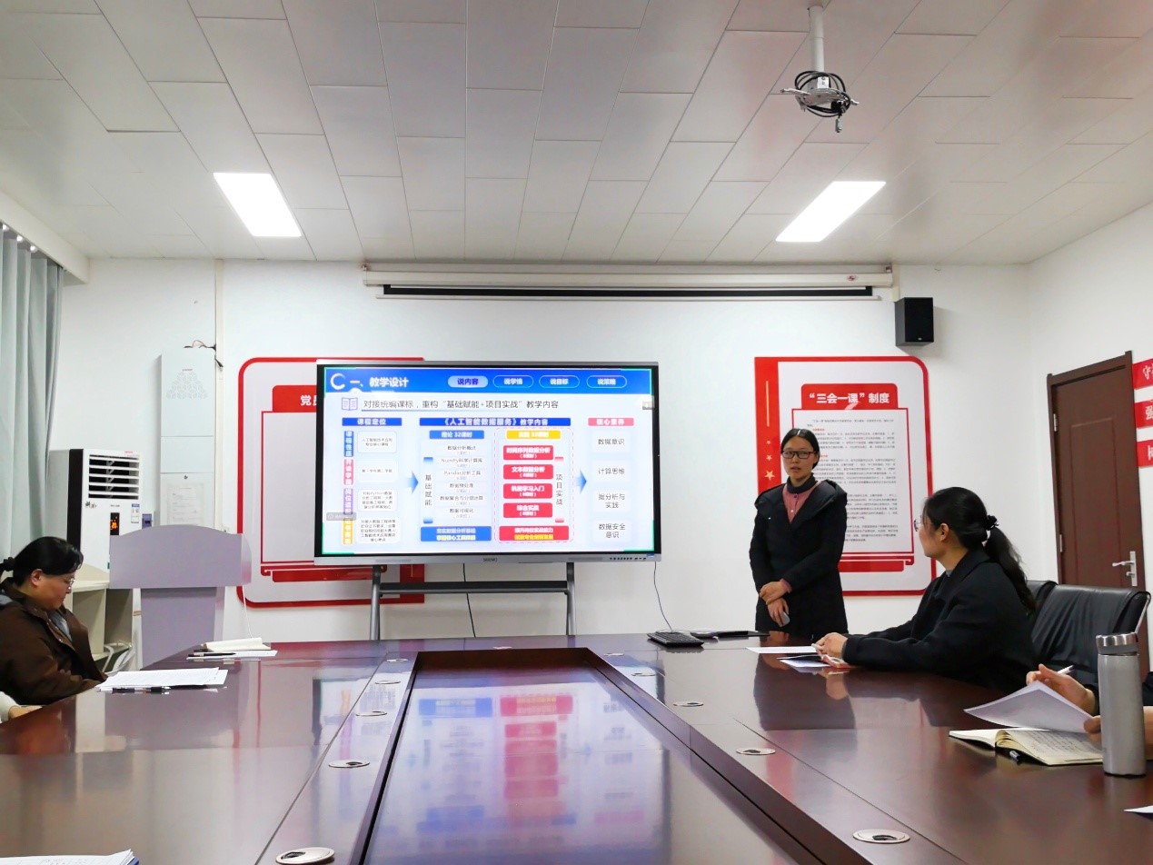 “说课程”环节同样精彩纷呈,七位教师围绕六大维度展开深入阐述:米楠老师在《三维动画制作》中通过项目驱动教学提升员工创作能力;孙星老师针对《数字图形》分享了模块化内容体系与混合式教学模式;谢妞妞老师在《数据库技术及应用》中运用虚拟仿真与案例教学法强化实操能力;吴华芹老师围绕《Java程序设计》以“讲练结合、赛教融合”重构课程内容;刁燕鹏老师在《通信工程制图》中对接行业标准开展工程实践训练;雷惠芳老师针对《人工智能数据服务》采用任务驱动式教学覆盖数据全流程处理;杨争威老师则围绕《网络安全设备配置与管理》通过实战演练培养员工解决实际问题的能力。每位教师的汇报均紧密结合人才培养需求,充分体现了课程建设对技术技能人才培养的支撑作用,并在随后的交流答辩环节中与参会教师展开了深入探讨。