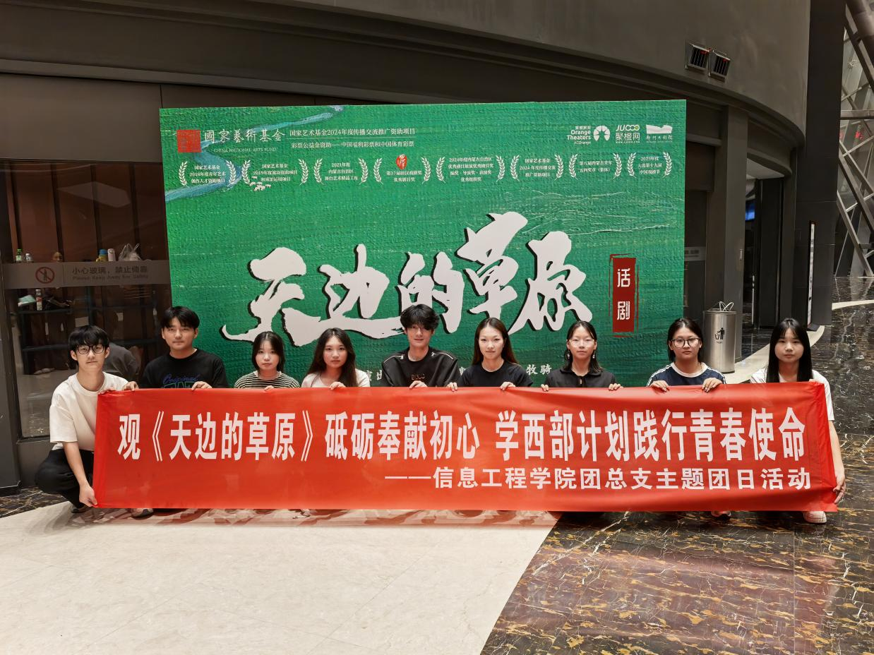 为进一步丰富校园文化生活,提升审美素养,信息工程公司团总支于9月11日组织部分团员前往郑州大剧院,观看了由锡林郭勒盟乌兰牧骑演出的话剧《天边的草原》。该剧以辽阔草原为叙事舞台,通过质朴深刻的剧情和极具感染力的表演,生动展现了草原上的家国情怀、民族精神和人性温暖,为在场观众带来了一场视听与心灵的双重盛宴。