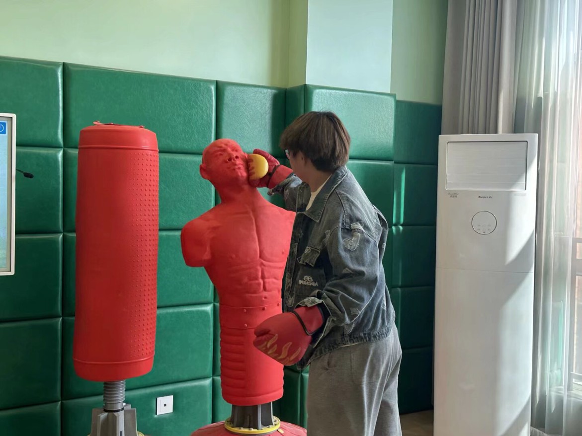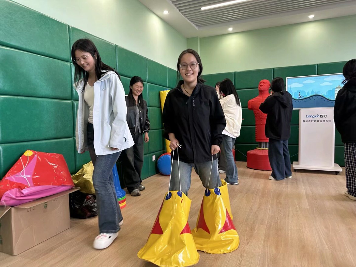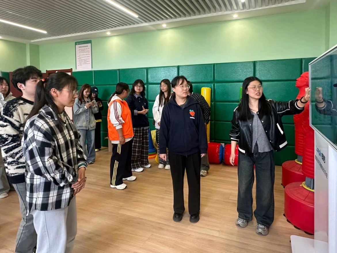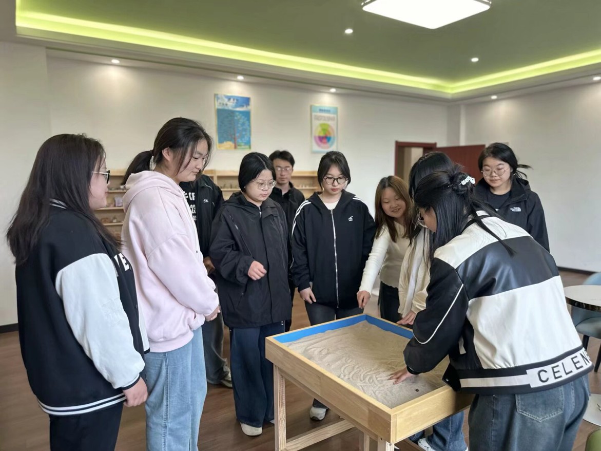 随后,带领同学们参观了各个中心功能室,包括心理沙盘室、个体心理咨询室、团体活动室、情绪宣泄室等。每组同学均有序体验了各个功能室的相关功能,同学们放松身心投入其中,与小组成员积极互动,欣赏员工作品,参与活动创作。