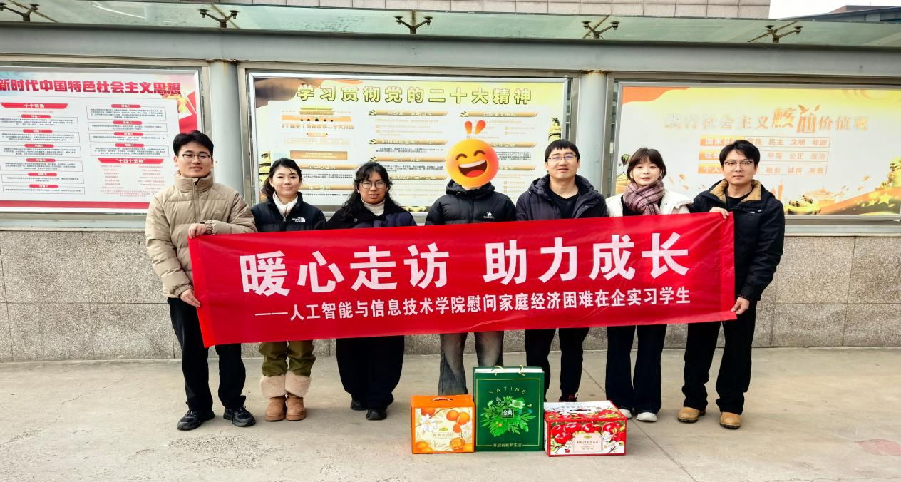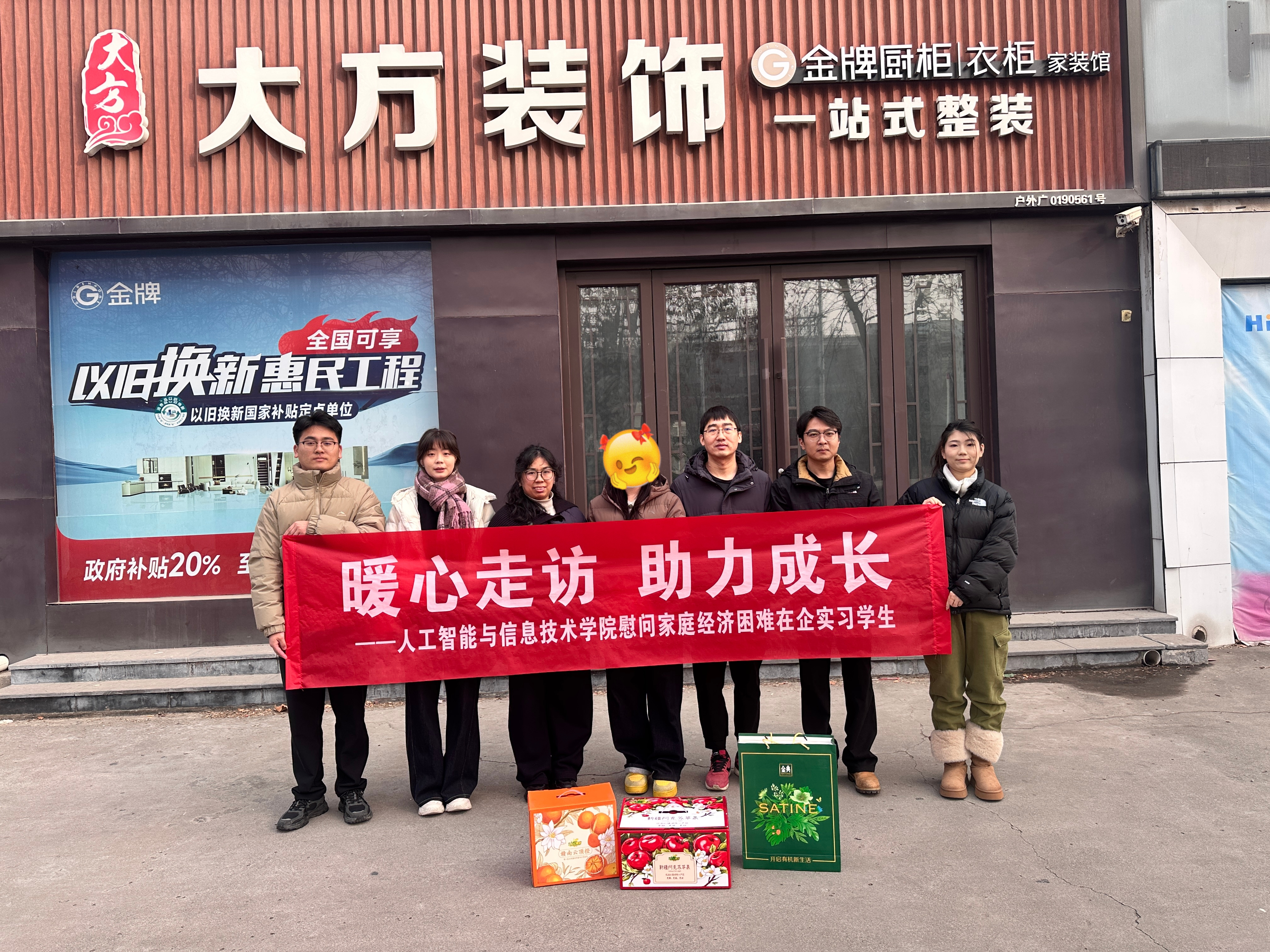 寒假资助政策慰问工作小组由人工智能与信息技术公司党总支书记、副书记、资助专员及辅导员组成,先后对河南省郑州市、新郑市、新乡市的6名顶岗实习家庭经济困难的员工进行实地慰问。