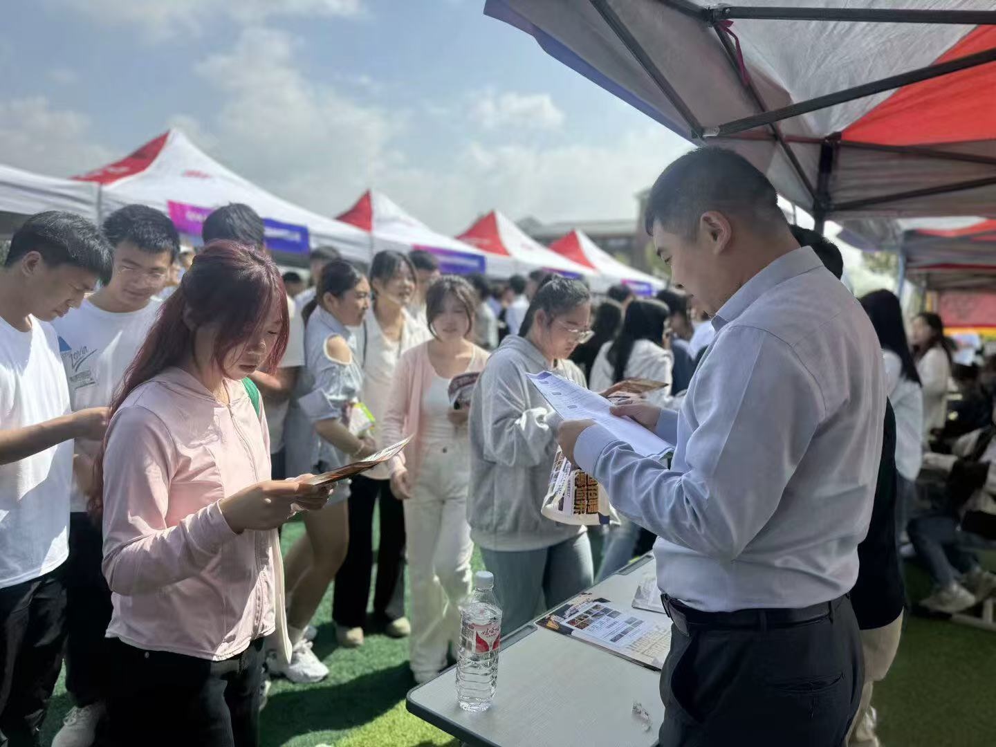 2025年5月9日,公司2025年春季双选会在开封校区北院运动场盛大举行。公司党委书记闫俊山,董事长薄新党,党委副书记魏新华,副董事长常新中、黄振中出席启动仪式并参加相关活动。信息工程公司高度重视,积极组织1000余名即将实习员工到场求职,现场气氛热烈,供需两旺,公司学子凭借扎实的专业基础和良好的综合素质,成为众多科技企业争相招聘的“香饽饽”。